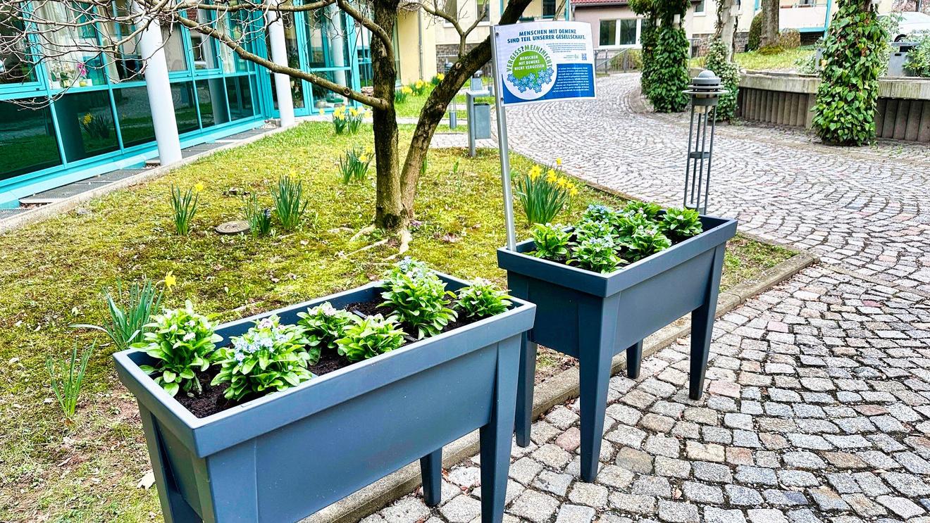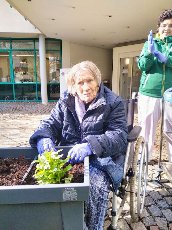 Gemeinsam mit den Bewohnerinnen und Bewohnern unseres Seniorenpflegeheims »An der Mozartstraße« haben wir Vergiss-mein-nicht-Pflanzen gesetzt. und weitere Blumen ausgesät, die bald unseren Garten verschönern werden.